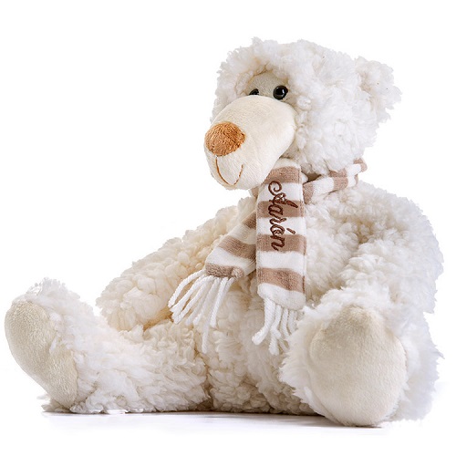 • Osito de peluche bordado Regalar un peluche suele ser muy habitual, pero que lleve el nombre del protagonista bordado en su bufanda no lo es tanto. Este osito de peluche se convertirá en el mejor compañero de juegos del bebé conforme vaya creciendo.