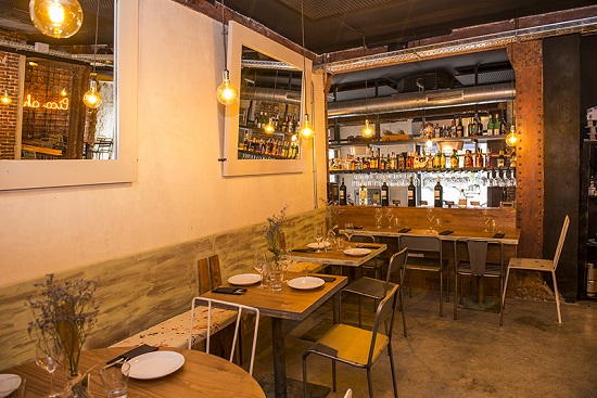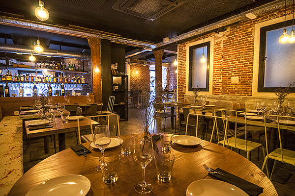 Un sinfín de opciones para disfrutar de la buena mesa en compañía, en un local de estética industrial, con paredes de ladrillo visto respetando el edificio original, estructurado en dos plantas, con un reservado con capacidad de hasta 50 personas de pie y 25 sentados en planta sótano, y el salón planta calle, con zona de mesas altas y otra de mesas bajas, todo iluminado por unos grandes ventanales del suelo al techo, y que incluso alberga una agradable terraza interior.