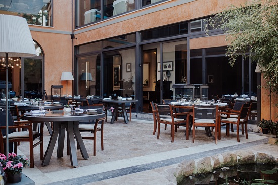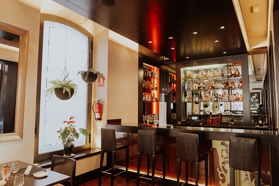 Para poner el broche final a las comidas y cenas, dispone de un espectacular patio interior donde se encuentra una barra de G’vine para disfrutar de cualquiera de sus cócteles en un ambiente más relajado y original.