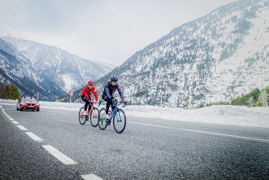 Para bajar el puerto de montaña el piloto carga su bicicleta en el coche. El sistema de tracción integral 4Drive de su vehículo le ayuda en el descenso. “Hay que intentar alargar la vida deportiva al máximo, y el coche nos ayuda a evitar riesgos y lesiones innecesarios”, comenta al volante.