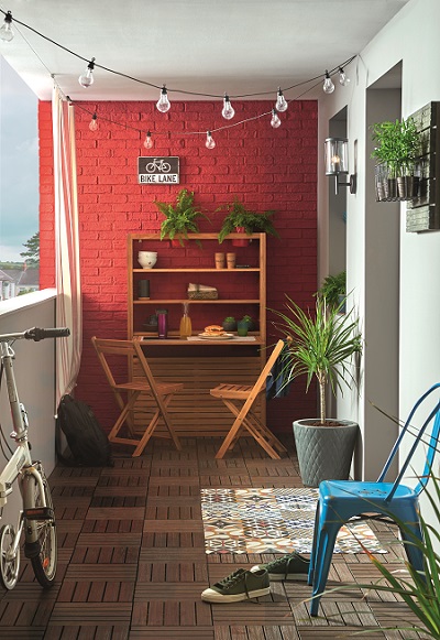 Puedes sacarle un gran partido a tu terraza con el mobiliario y los complementos adecuados. La clave está en elegir elementos funcionales y ligeros, que permitan infinitas combinaciones y posibilidades. Con un set de pared con estantería y mesa integrada y  unas sillas plegables puedes crear un rincón perfecto para el desayuno.
