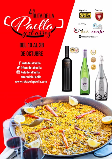 En esta IV edición participarán un total de 20 establecimientos de gran tradición y relevancia en la elaboración de arroces, con menús que constarán de un entrante, un plato principal (paella o arroz) armonizados con Marina Alta, Marina Espumante, o Laudum Roble y un postre. El importe de las especialidades ofrecidas podrá ser fijado por cada establecimiento participante en la “Ruta de la Paella y el Arroz” siendo el precio recomendado entre 25 y 40€ (IVA incluido). Unos menús confeccionados para la ocasión en los que podremos degustar desde las paellas más conocidas hasta los tradicionales arroces caldosos pasando por las innovadoras recetas de platos elaborados con arroz.
