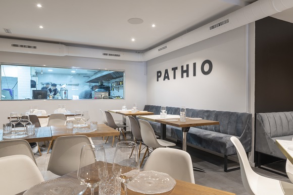 Al fondo de la sala y en diferente altura, un gran reservado para eventos privados de hasta 70 comensales, además de la cocina vista que preside el salón. Pathio cuenta con terraza abierta durante todo el año.