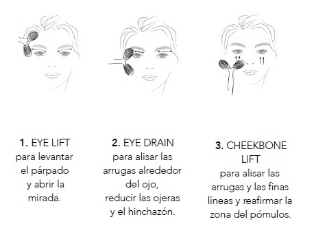 Ritual de aplicación: aplicar mañana y noche en la zona de contorno de ojos y párpado superior (no móvil) con movimientos de drenaje.