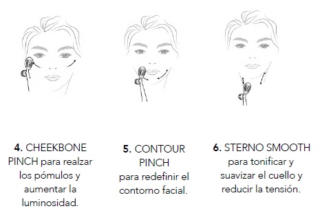 Los expertos PAYOT han creado 6 movimientos específicos para cada zona. Realiza cada uno de los movimientos tres veces, durante un minute: