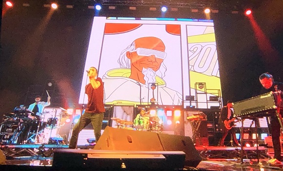Un directo espectacular con una escenografía moderna, bajo el liderazgo de un cantante valiente que se atrevió a recorrerse el recinto de punta a punta saltando con sus fans.