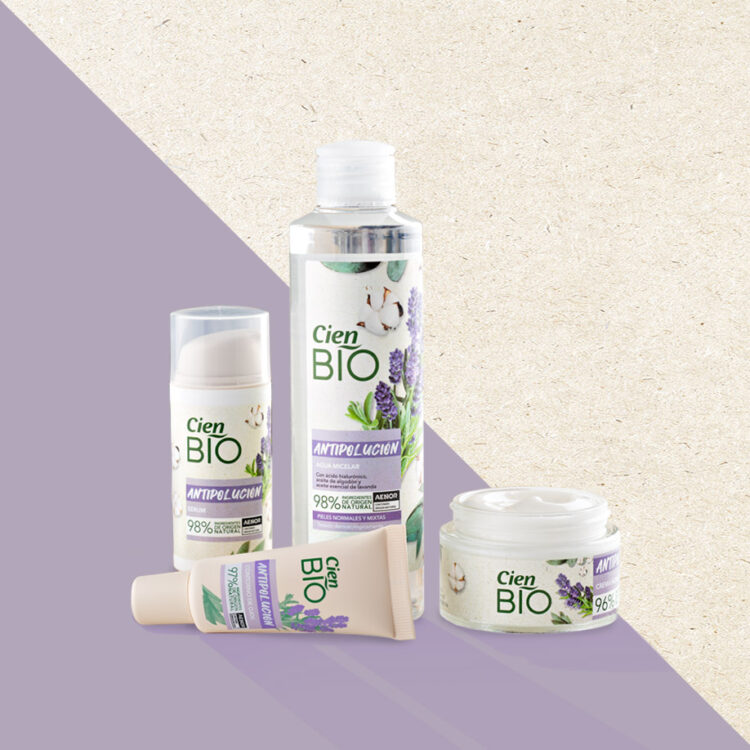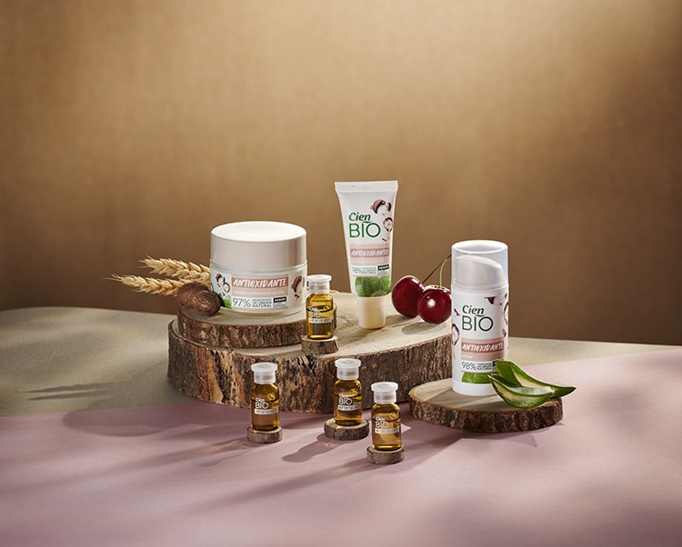 La nueva línea CIEN BIO, está formado por 8 productos, desde agua micelares, cremas faciales, ampollas de tratamiento, contorno de ojos y sérum facial. Toda una gran propuesta en cosmética ecológica para el mercado que cuenta con el sello AENOR, que garantiza que los ingredientes de todos los productos son naturales.