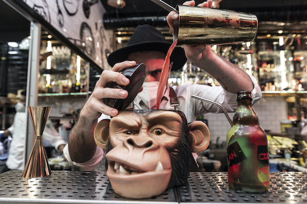 Para acompañar sus novedosos platos, proponen su atrevida coctelería, servida en originales recipientes.