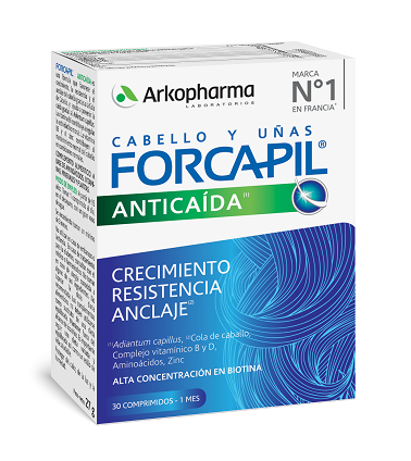 Modo de empleo: 1 comprimido al día, en el desayuno. Se recomienda un programa de mínimo 3 meses. Producto número 1 en Francia en la farmacia, Forcapil Anticaída se presenta como novedad este año 2021 en España. Su triple mecanismo de acción (en fibra, bulbo y raíz) ofrece una solución a los problemas capilares actuales. Unido al efluvio telógeno que sufren los pacientes Covid19, se observa un descenso en la oxigenación del bulbo ocasionado por la
