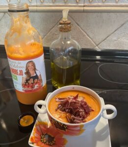 Finalmente encontró eses lugar en Alhama, un pequeño pueblo de Murcia, rodeado de huerta en la empresa Cool Vega Company, con productos de la huerta murciana, tomante, pimiento y pepino, a los que ha añadido, ajos de Cuenca y aceite de Jaén. Todo para conseguir “Sabores de la Esteban”, naturales, sin gluten y aptos para veganos.