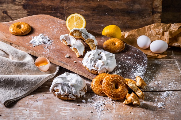 • Las tontas, que reciben el nombre por la simpleza de la receta, se preparan a base de harina, huevos, azúcar, aceite y un poquito de anís y son la base del resto de rosquillas.