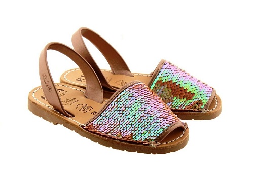 Otro clásico veraniego: las menorquinas. Puedes apostar por las clásicas de siempre o por este modelo con lentejuelas metalizadas. ¡A tu peque le van a encantar!