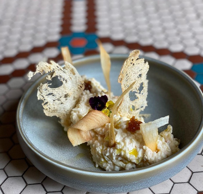 Cocina de mercado basada en el respeto a la materia prima de la calidad de los alimentos. En su carta algunos imprescindibles que tendrás que probar cuando vayas como la ensalada de burrata con milhojas, o la ensaladilla de gambas que a más de uno les recordará a sus vacaciones por las playas de Cádiz. Platos como el rabo de toro con pan bao, el atún rojo de Balfegó o la tortilla vaga con queso azul.