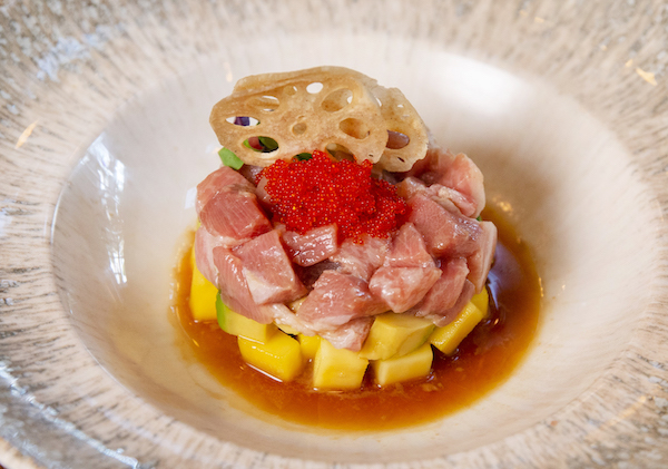 un toque de aceite arbequina que tiene un corte perfecto al estilo tradicional japonés