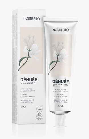 El secreto del éxito de DÉNUÉE está en la combinación de ciencia y naturaleza. Por una parte, la innovación exclusiva de los laboratorios Montibello, la tecnología AQUAGEL, un potente sistema de liberación de pigmentos basado en el agua que captura, retiene y libera las moléculas de color de forma gradual y controlada. AQUAGEL transporta el pigmento hasta la estructura interna del cabello y lo libera progresivamente consiguiendo un color de alta definición: nitidez y cromaticidad como en un cabello natural.