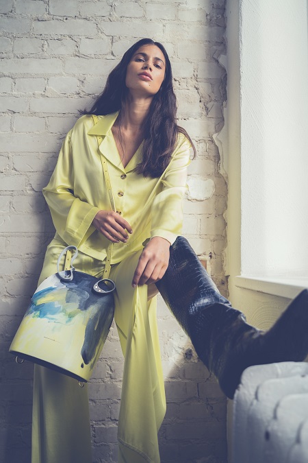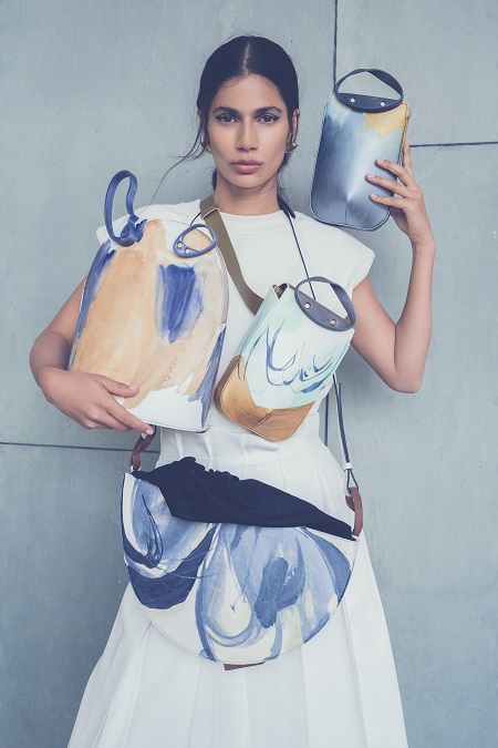 Son bolsos de patronaje sostenible, diseñados para facilitar su reparación, prolongar su uso y permitir que al final de su vida útil puedan retornar a la naturaleza reduciendo así la huella de carbono. A través de la tecnología blockchain aplicada a la moda, es posible trazar el seguimiento del origen de las materias primas empleadas y garantizar la autenticidad de cada pieza. Bolsos únicos y verificados que la artista pinta y diseña inspirándose en formas naturales.
