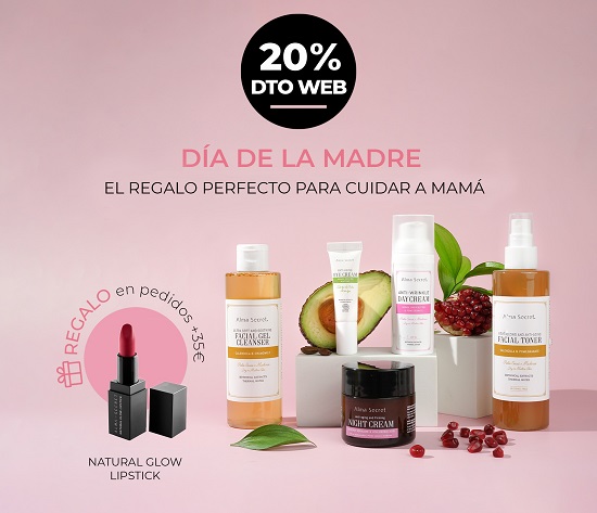 Para ello, esta firma española de cosmética natural ha puesto en marcha una oferta increíble: del 24 al 27 de abril puedes beneficiarte de un 20% de descuento en toda la web de Alma Secret y llevarte un labial de regalo en pedidos superiores a 35 €.