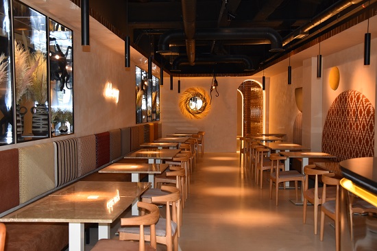 Traspasar las puertas de Chido Castizo & Chingón es adentrarse en uno de los bares de moda de Tulum, fuente de inspiración para el estudio de diseño de interiores MOCA Estudio, responsable de la decoración de este restaurante. Han creado dos espacios contiguos que se conectan a la perfección, jugando con los reflejos; los tonos naturales con colores tierra, terracota y anaranjados; y los techos espejados. Las paredes revestidas de microcemento para potenciar la luz y la ausencia de juntas aumentando la luminosidad y la amplitud del espacio. Los muebles también tienen un gran protagonismo, acompañados de espejos de paja y jarrones con pampas secas, que acompañan muy bien los diferentes tapizados con estampados étnicos. En la entrada, nos da la bienvenida un graffiti de Marta Lapeña.