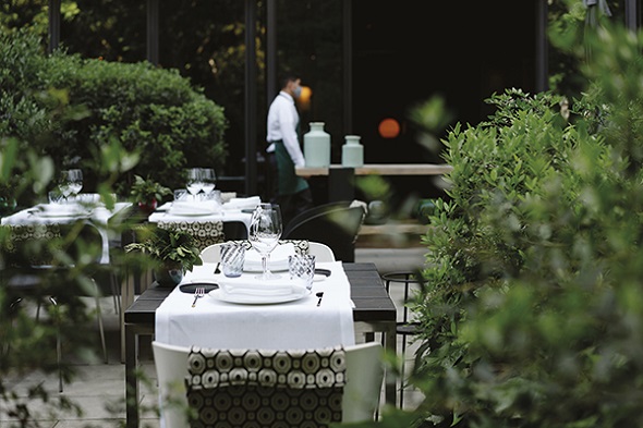 En este jardín mediterráneo, rebosante de colores en todas las épocas del año, el chef Gio Esteve propone una cocina hecha al momento, basada en productos de temporada y con una sabia fusión de la cocina catalana con otras tendencias, caracterizada por la calidad y el equilibrio.