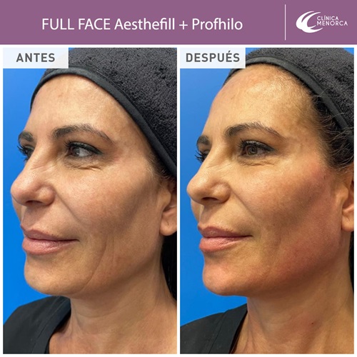 Al combinar AestheFill® con Profhilo® se consigue una mayor redefinición del contorno y remodelación de la flacidez, pues no solo se reactiva la producción de colágeno, sino que se contrarresta la pérdida fisiológica del ácido hialurónico en los tejidos. Se juega en dos planos, el ácido hialurónico se inyecta en primer lugar a nivel profundo y el ácido poliláctico se inyecta a continuación a nivel superficial. Desde el principio la paciente va a ver un resultado palpable en cuanto a la recuperación de volúmenes, y a los dos meses se verá el resultado pleno, cuando haya realizado su trabajo el ácido poliláctico y se haya creado el nuevo colágeno.