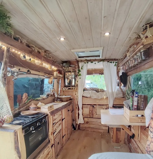 Si sueñas con despertar en una cabaña en el bosque, rodeada de naturaleza, cascadas y animales, esta furgoneta camper que te mostramos es para ti. Gracias a su original interior de madera, lleno de detalles y decoraciones, podrás descansar lejos del ruido de la ciudad, viajando como a ti te gusta.