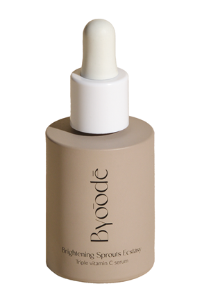 VITAMINA C: El suero Brightening Sprouts Ecstasy de Byoode contiene una combinación del 10% de tres tipos de vitamina C: Magnesium Ascorbyl Phosphate, Sodium Ascorbyl Phosphate y Ascorbyl Glucoside, los cuales estimulan la síntesis de colágeno y elastina. Este suero se presenta como una opción ideal para todos los tipos de piel, destacando su eficacia particular en pieles propensas al acné o con tendencia a la grasa, ya que estas a menudo reaccionan de manera adversa a otras formas de vitamina C. 55 € en Byoode.com