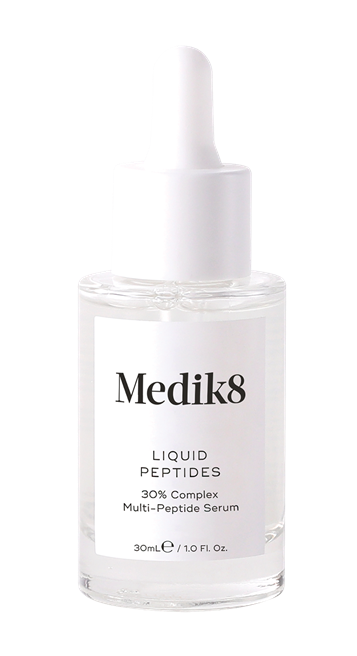 PÉPTIDOS: Liquid Peptides de Medik8 es un suero que incluye en su interior multitud de péptidos, como Matrixyl 3000, pero también otros muchos más. Además, los encapsula en una tecnología propia que trabaja con drones cosméticos. Esos drones consiguen transportar los péptidos al fibroblasto de las células de la piel para que sean más efectivos. 64 € en Medik8.es