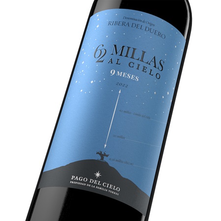 Cuando se cumplen veinte años de la llegada de Familia Torres en Ribera del Duero, Pago del Cielo lanza al mercado un nuevo vino procedente de Fompedraza, el lugar donde se asienta la bodega y de mayor altitud en la provincia de Valladolid. La ubicación a 900 metros sobre el nivel del mar ha servido de inspiración para la bodega y sus vinos. 62 Millas al Cielo también habla de altitud, ya que nace de viñedos plantados en esta zona, de entre las más altas de la DO, y evoca la proximidad al cielo con un nombre que hace referencia a la distancia entre la tierra y la línea de Kármán, considerada el límite entre la atmósfera y el espacio exterior.