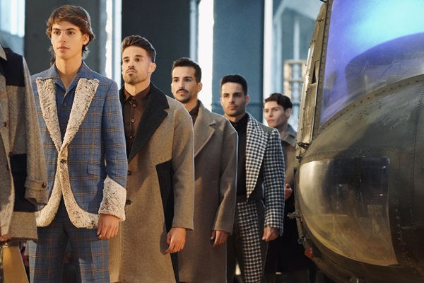 Tejidos de seda natural italiana pintada a mano convergen con algodones, linos y lanas frías, que en patrones artesanales pensados para favorecer la silueta masculina conforman una colección de piezas en tonalidades vibrantes como el naranja y el azul, y en la que también hay hueco para otras gamas presentes en los pantones de los circuitos internacionales de moda como el marrón chocolate.
