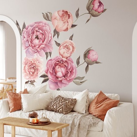 Atrás quedaron los días de las paredes insulsas. Los murales adhesivos de peonías ofrecen una forma cómoda y económica de meter ese toque floral. En un salón, un mural de peonías a gran escala puede crear un punto focal dramático, mientras que un diseño más pequeño en el dormitorio puede promover una sensación de tranquilidad. Los papeles pintados con motivos de peonías son otra buenísima opción para una experiencia floral inmersiva, ahora que está tan de moda. Puedes optar por un diseño con peonías de colores pastel sobre un fondo claro para crear una atmósfera espaciosa y tranquila. Los dormitorios íntimos se benefician de los murales de peonías más pequeños o del papel pintado con un delicado estampado de peonías. Los rosas, blancos y cremas suaves promoverán un ambiente calmante.