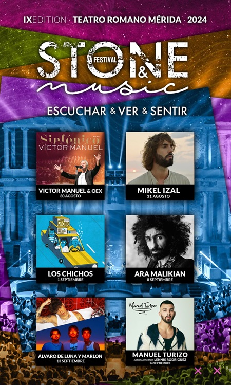 Ya está todo listo para que dé comienzo la segunda parte de la novena edición del Stone & Music Festival. La música en directo regresa este fin de semana al emblemático al Teatro Romano de Mérida con una triple cita musical. Víctor Manuel, el viernes; Mikel Izal, el sábado; y Los Chichos, el domingo, serán los encargados de reanudar la novena edición del certamen, que ya celebró seis conciertos durante el pasado mes de junio. Para las tres citas todavía quedan las últimas entradas disponibles a la venta.