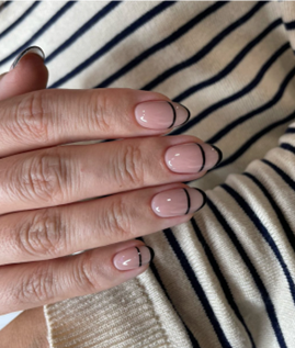 La clásica manicura francesa se reinventa este invierno, combinando la línea blanca con tonos oscuros o destellos de purpurina. Este giro moderno aporta un aire divertido y elegante, ideal tanto para uñas cortas como largas.