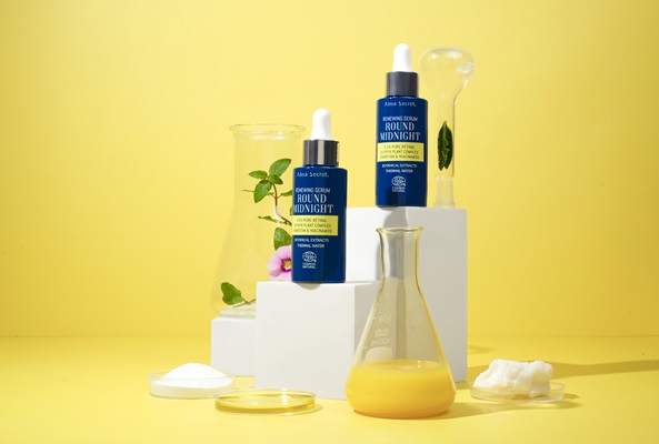 La nueva gama Round Midnight se centra en el tratamiento nocturno de la piel y consta de tres productos: un contorno de ojos (0,05% de retinal) y dos sérums (0,1% y 0,2%). Todos están diseñados para combatir manchas, unificar el tono, reducir arrugas, mejorar la firmeza y aportar un aspecto más rejuvenecido.