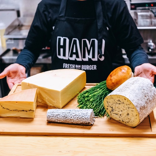 Uno de los elementos diferenciadores de Ham! Fresh Burger es su apuesta por el queso francés sin pasteurizar, con variedades como Sainte Maure, Morbier, Fourme d’Ambert y Raclette. Cada mes y medio, la carta se renueva con una burger especial que incorpora un nuevo queso de edición limitada. Las salsas, entre ellas la mayonesa de cebolla caramelizada, y las patatas caseras cortadas a mano complementan una oferta gastronómica marcada por el detalle y la autenticidad.
