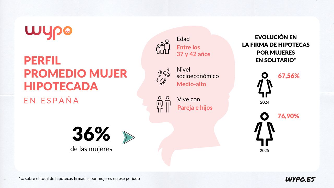 Según describe Ansótegui, en 2024 el perfil promedio de la mujer que solicitó una hipoteca en España se sitúa entre los 37 y 42 años, con un nivel socioeconómico medio-alto, y en muchos casos, conviviendo en pareja y con hijos. Este grupo representó el 36% de las solicitantes femeninas de hipotecas. Estudios recientes indican que las mujeres no sólo lideran la compra de viviendas con financiación, sino que también destacan en las adquisiciones al contado.  Otro dato que sirve para visibilizar este fenómeno es que, en 2023, el 52% de las hipotecas fueron firmadas por mujeres, y un 58 % en 2024, consolidando una tendencia hacia el equilibrio de género en este ámbito, destaca la experta.