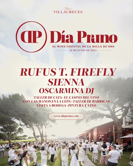 El próximo 21 de junio, Finca Villacreces vuelve a convertirse en el epicentro de la cultura vinícola y musical con una nueva edición del Día Pruno. Este año, los encargados de poner la banda sonora al evento serán Sienna y Rufus T. Firefly, dos referentes de la escena musical nacional que se suman a la tradición de este exclusivo wine festival.