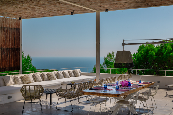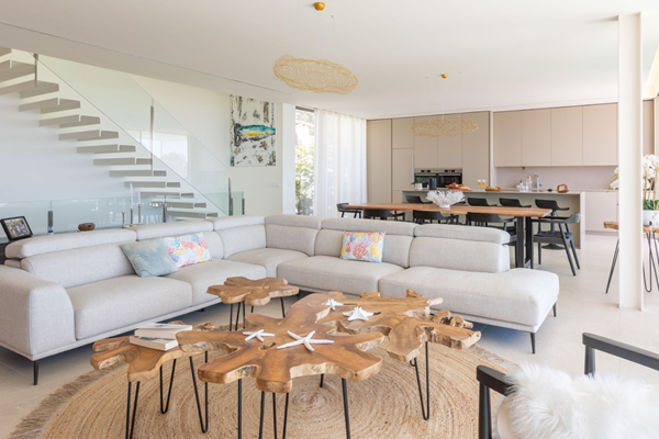 Mastella, por otro lado, se encuentra una impresionante parcela de 2500 m2 en una colina de Moraira. Se trata de una edificación nueva, con espacio para 12 huéspedes y un diseño que fusiona el estilo ibicenco y el mediterráneo. Cuenta con una gran zona exterior, con vegetación tropical autóctona, aparcamiento para varios vehículos y una gran entrada de luz natural. Además, está equipada con tecnología moderna, electrodomésticos de alta gama y una ubicación a escasos minutos de la Costa de Benissa.