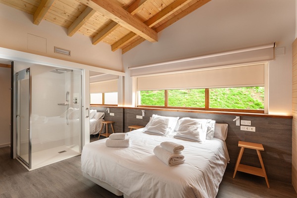 El complejo cuenta con 12 eco villas de estética nórdica, construidas en madera, piedra y corcho. Todas son independientes y están equipadas con cocina, salón y terraza. Entre ellas destacan: