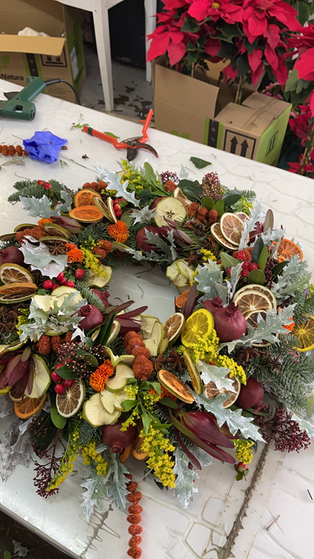 Durante tres horas (de 10:30 a 13:30 h), los asistentes aprenderán a elaborar su propia corona con materiales orgánicos y sostenibles: vegetación fresca como pinsapo y eucalipto, flores secas, frutos naturales, especias y adornos que aportan ese aire cálido y festivo tan característico de diciembre. Dos profesionales acompañarán el proceso paso a paso, con todo el material incluido, para que cada participante pueda llevarse a casa una pieza completamente hecha a mano.
