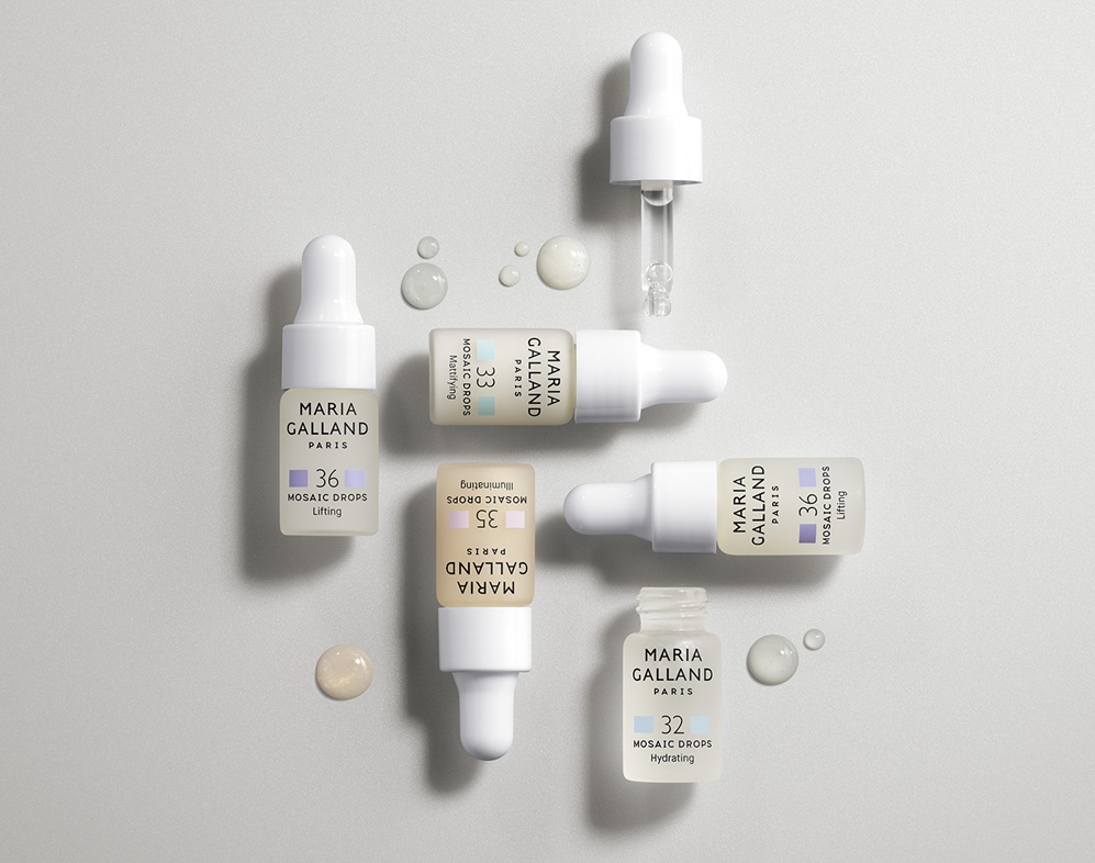 La solución por la que apuesta Maria Galland Paris fiel a su filosofía inicial [la piel es un mosaico de necesidades muy diferentes que hay que preservar con cuidados de belleza personalizados] son los MOSAIC DROPS, para utilizar solos, mezclados o combinados en «mosaico» y tratar zonas específicas del rostro según sus diferentes necesidades ya que todos comparten la misma fragancia.